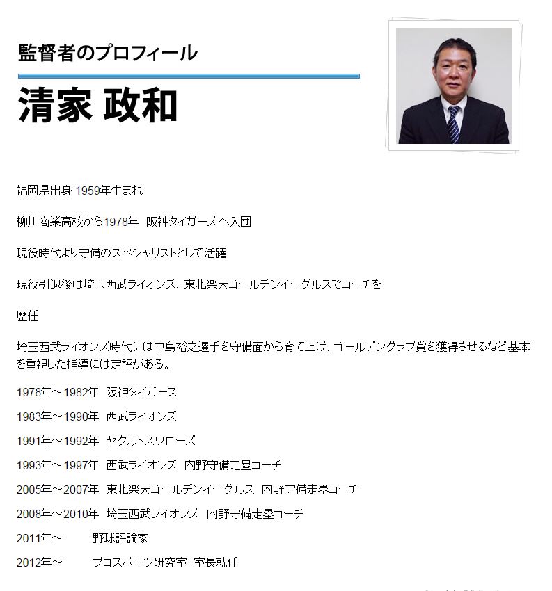 元・西武ライオンズ・楽天イーグルスの内野守備コーチ・清家政和氏