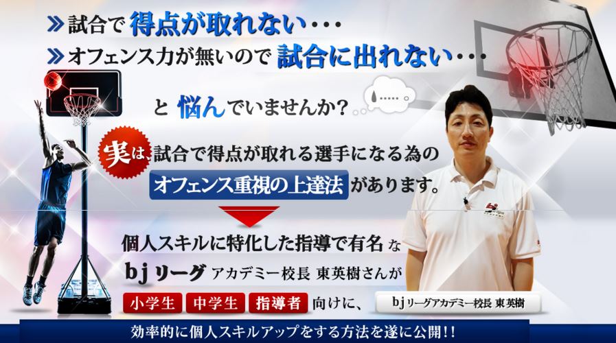 個人指導に定評のあるbjリーグアカデミー校長・東英樹氏が小学生・中学生・指導者(コーチ・監督)向けに、効率的に個人スキルを上げる方法を公開しています。
