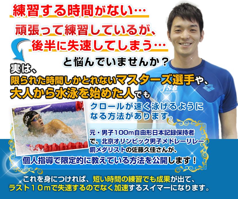 元・100m自由形日本記録保持者・佐藤久佳監修「自由形スピードアップ・プログラム」は、