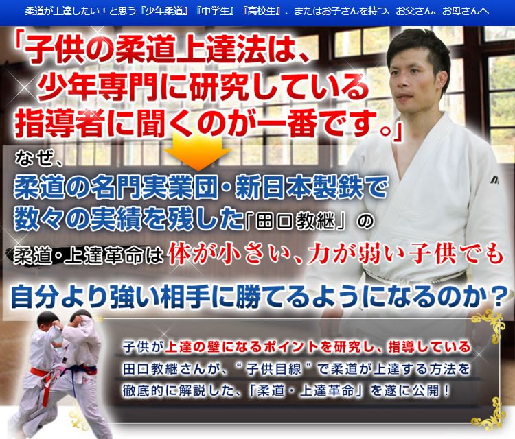 名門実業団・新日本製鉄で数々の実績を残した田口教継氏が、体格に恵まれていなくても、体力に自信のないお子様でも、格上の相手に勝てる方法をお教えします。