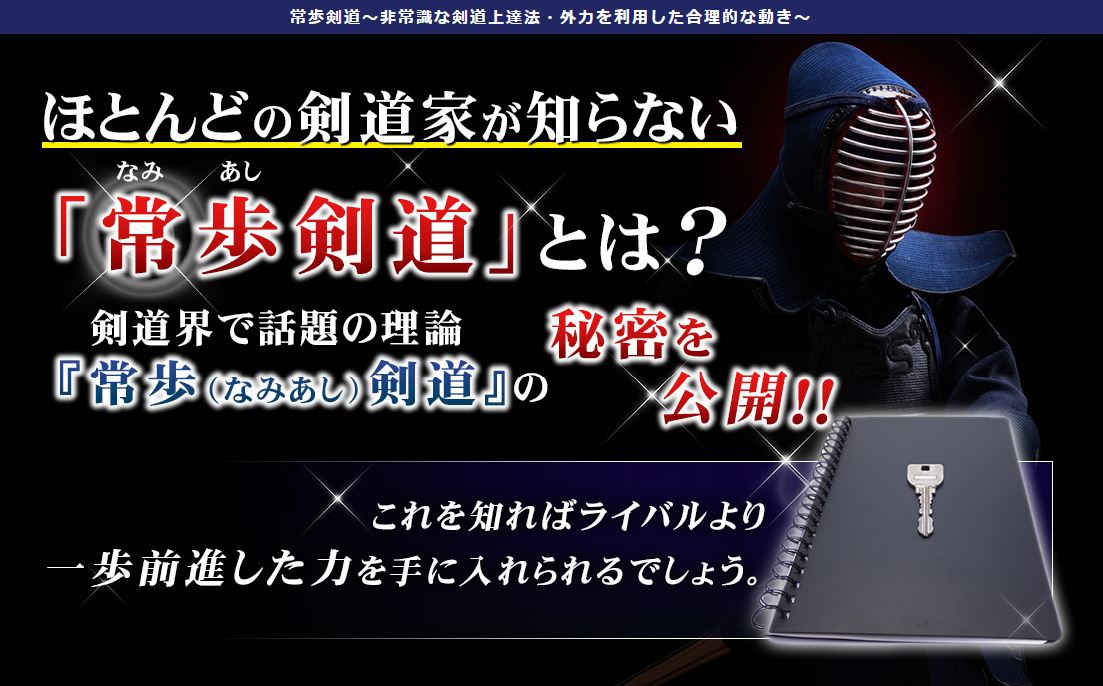 「非常識な剣道上達法」は、筋力に頼らない動き「常歩(なみあし)剣道」の習得に特化した上達プログラムです。