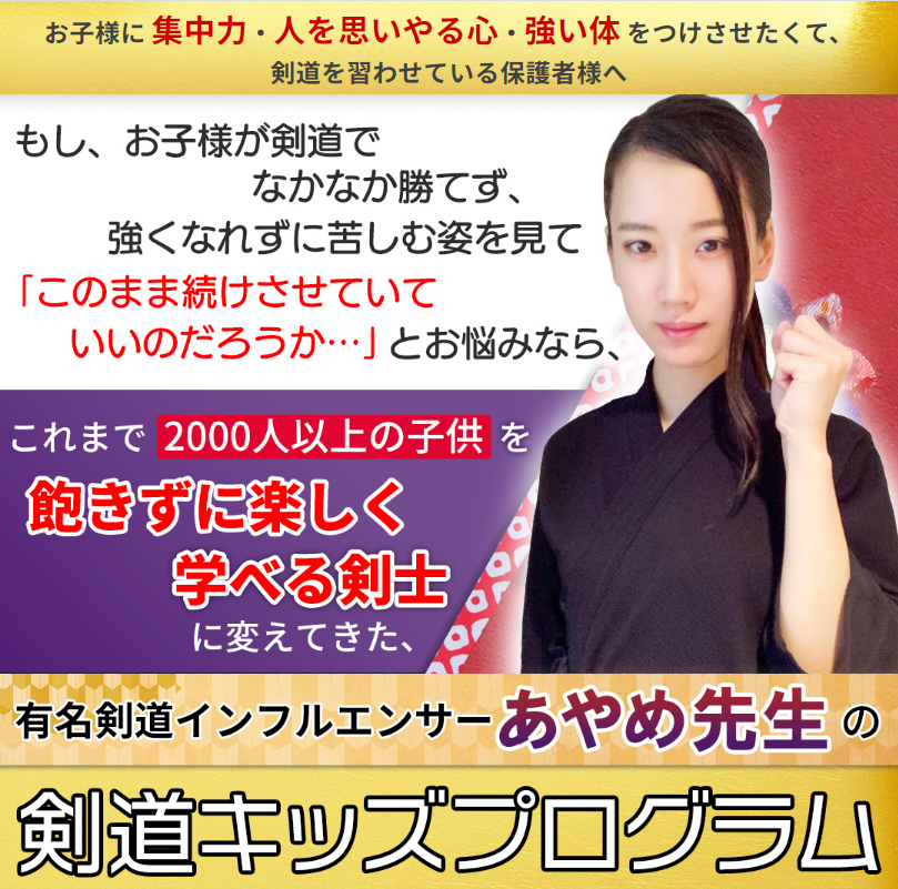 と願っているのなら、この あやめ先生の剣道指導はお子様にとって、かけがえの無いものになります。