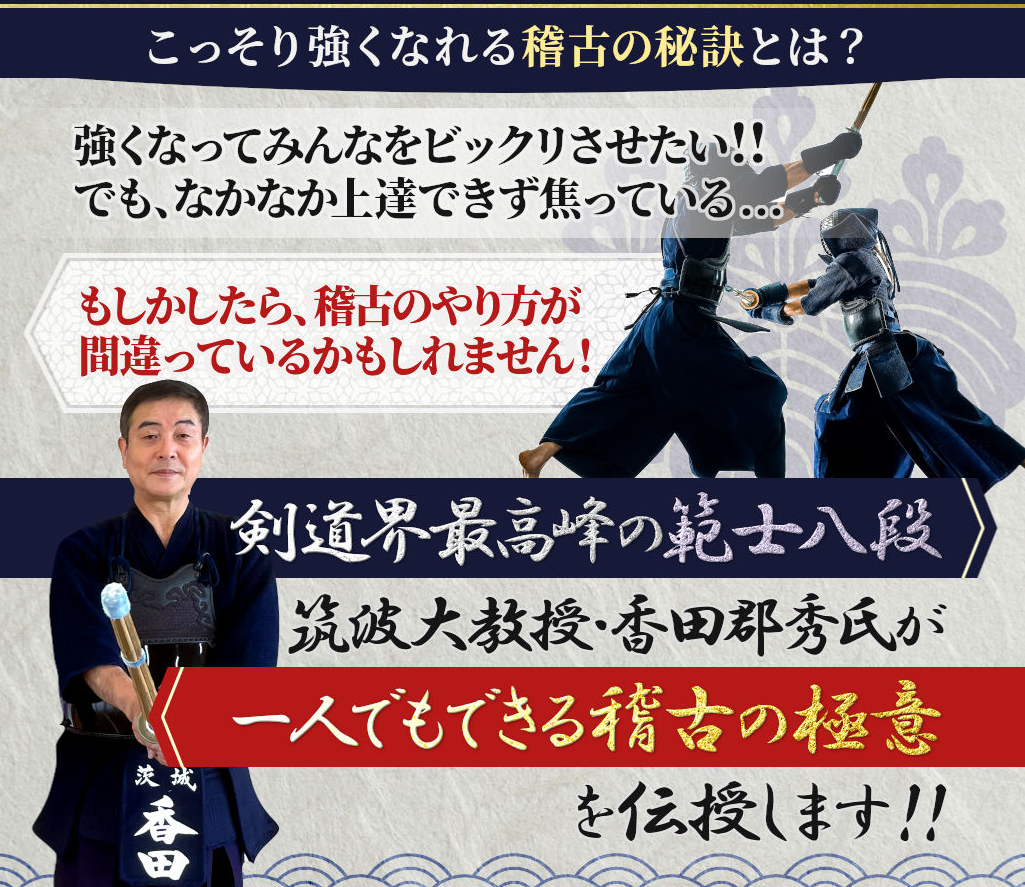 『【香田式】剣道の実力をつける稽古法 〜正しい剣道を身につけて試合にも強くなる秘訣〜』では、これまで香田先生が長年培ってきたご自身の実戦経験、そして指導経験に基づいてプログラムがつくられています。