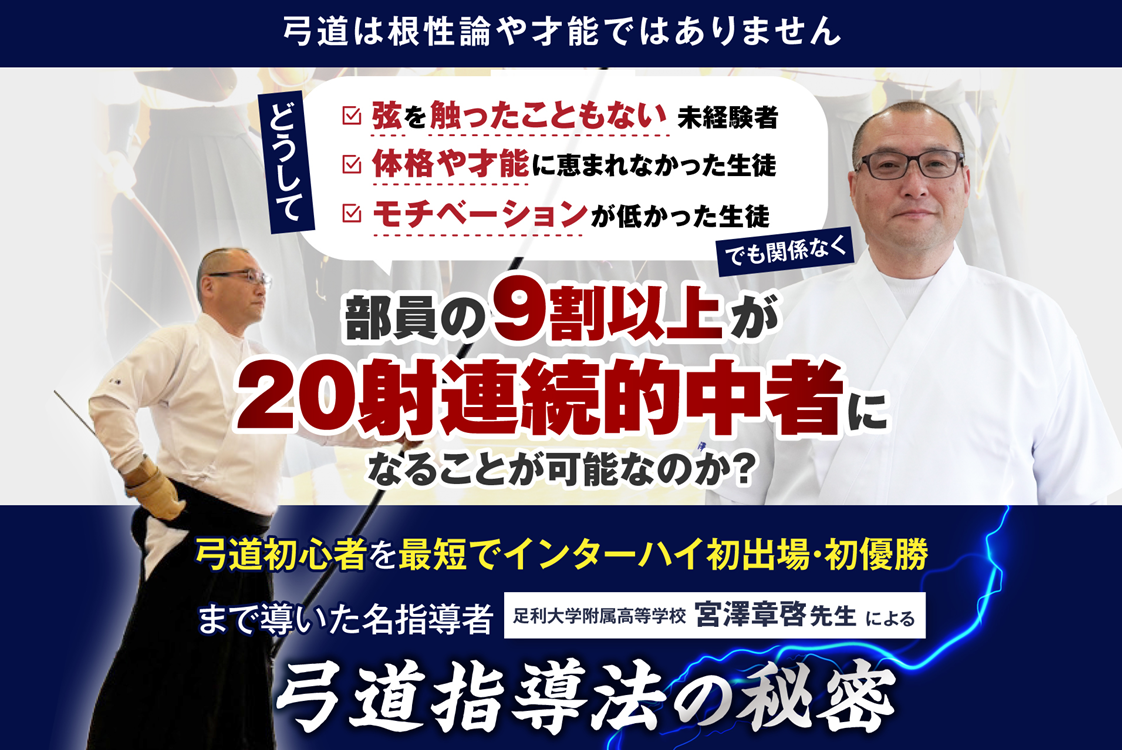 弓道指導法の秘密〜ポテンシャルを最大化して20射連続的中者が続出する方法〜 足利大学付属高等学校 宮澤章啓 指導・監修