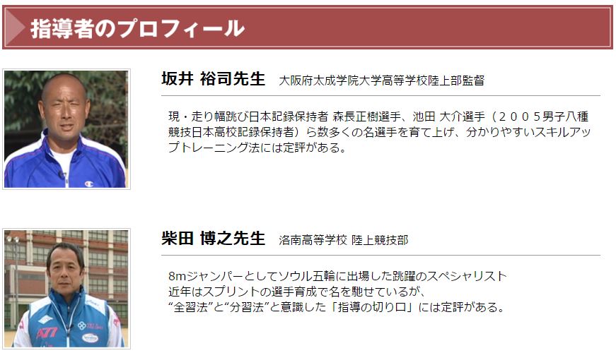 指導してくれるのは、大阪府太成学院大学高等学校陸上部監督の坂井裕司先生と洛南高等学校陸上競技部の柴田博之先生です。