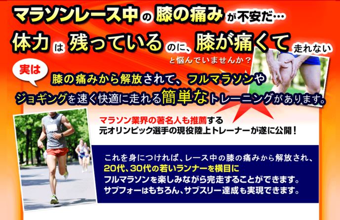 継続して実践すれば、今まで感じていた膝の痛みは解消し、同時にマラソンのタイムを飛躍的に伸ばすことができます。