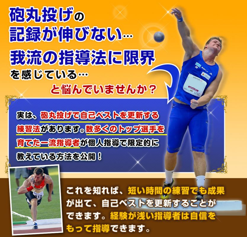 もし、上記のような悩みや疑問をスパッと解決したいなら、今回ご紹介する「砲丸投げ上達革命」をご確認ください。