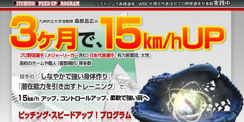 「ピッチング・スピードアッププログラム」は、ピッチャーに必要な全てを、強化&改善し、球速を140km/hレベルにまで引き上げることを目指す、森部昌広氏監修の上達プログラムです。