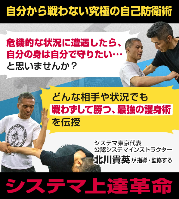 この北川氏が指導・監修するシステマ上達法では、日常生活のどんな場面でも対応できる…